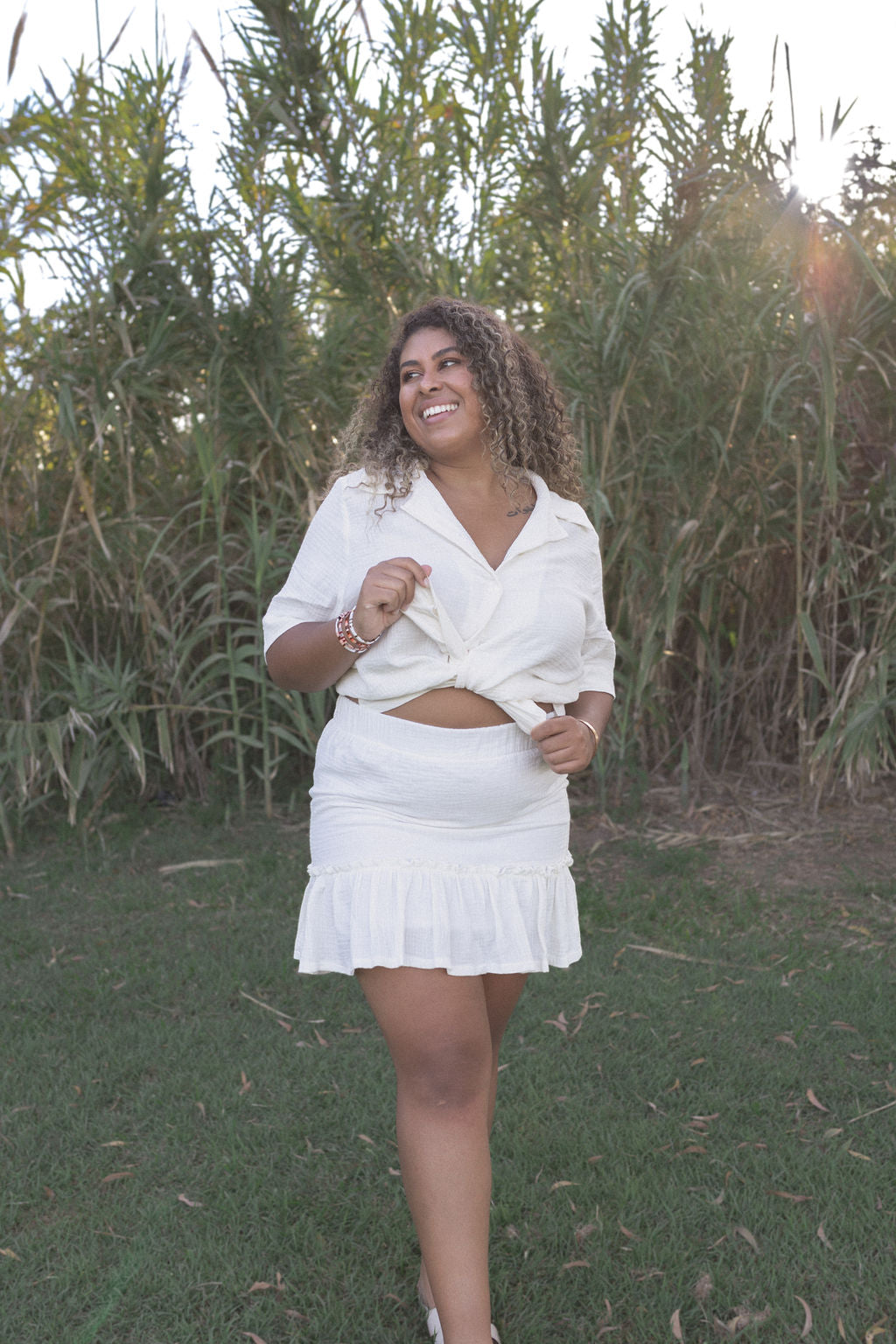 The oversized button up can be styled many ways. Tie up for a cute crop moment (Like our model Addy has) or wear out over a pair of denim shorts for a classic style. You can even throw it on over your bikini at the beach.
