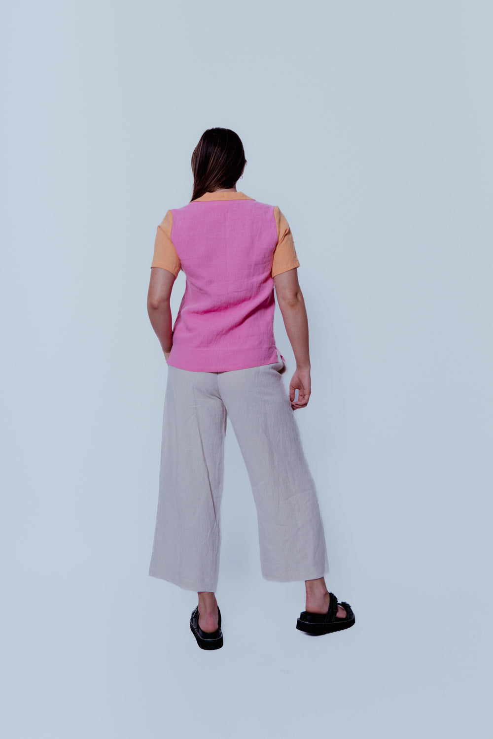 Holiday Button Up - Blossom Orange and Candy Pink Linen